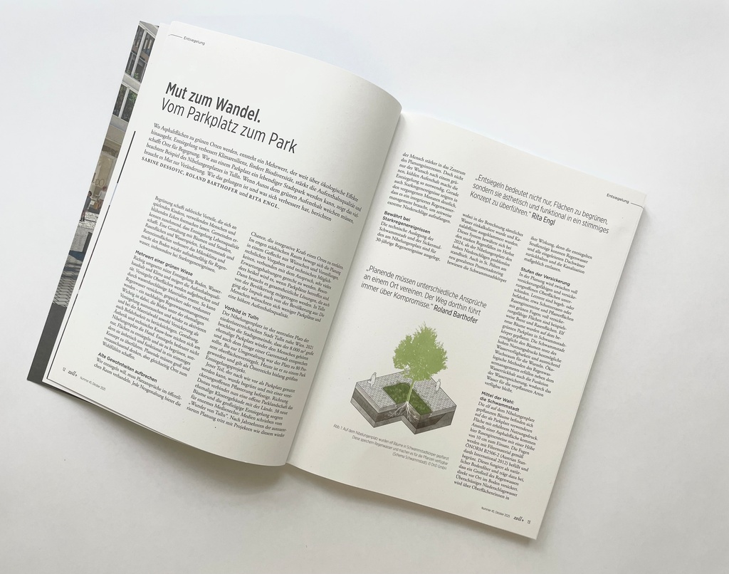 Diesen Herausforderungen begegnen wir mit grüneren Freiräumen, versickerungsoffenen Böden und mit blau-grüner Infrastruktur. Darüber haben wir – am Beispiel des Nibelungenplatzes in Tulln – im neuesten zoll+ geschrieben.
