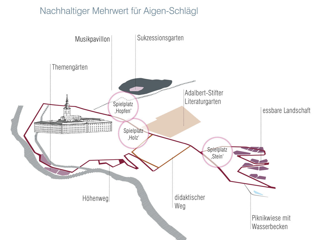 Ziel der Landesausstellung Aigen-Schlägl ist die Synthese von Garten:Kultur und Kultur:Landschaft vor Augen zu führen und den Menschen die Zusammenhänge vor der wunderbare Kulisse des Mühlviertels näherzubringen. Der Aspekt der Achtsamkeit spielt in allen Bereich eine zentrale Rolle und drückt sich in verschiedenster Art und Weise in den jeweiligen thematischen Ausstellungsbereichen aus.