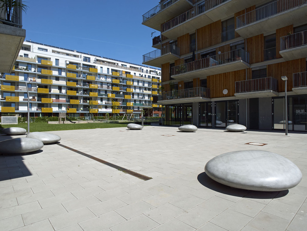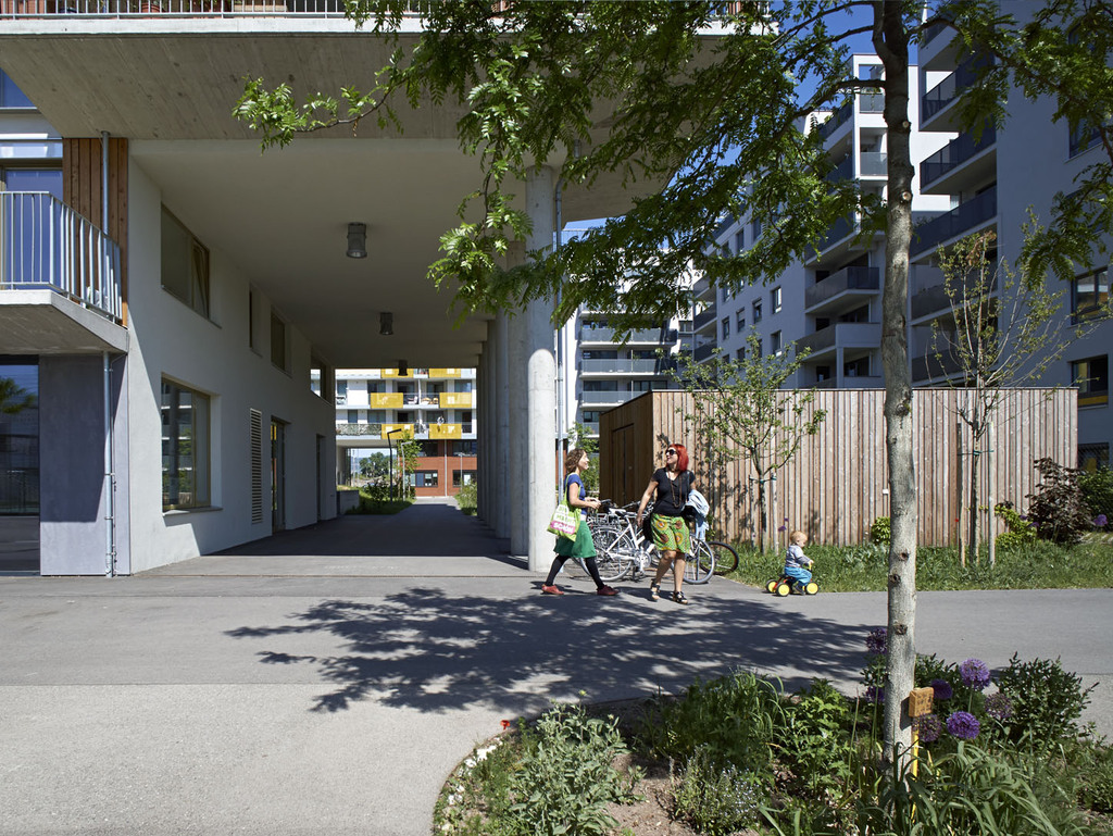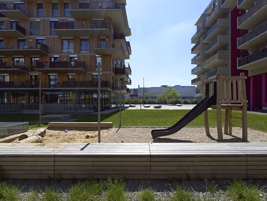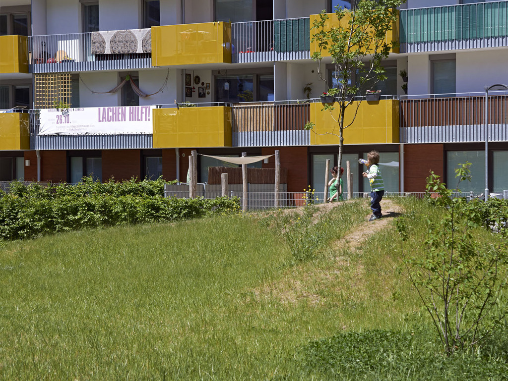 Die Gestaltung des Freiraums erfolgt prozessual: Die Anlage ist bereits nutzbar und wird dennoch weiter gestaltet. Die Umsetzung der Freiraumplanung erfolgt in 3 Phasen: Phase 1 sorgt für die Grundausstattung des Bauplatzes und verbindet den wohnanlagenbezogenen Grünraum mit nahegelegenen Freiräumen der Umgebung. In Phase 2 erfolgt die planliche Konzeptionierung des Freiraums im Rahmen eines Workshops unter Einbeziehung der künftigen BewohnerInnen.In Phase 3 wird die Gestaltung der Freiräume unter maßgeblicher Beteiligung der BewohnerInnen ausgeführt.